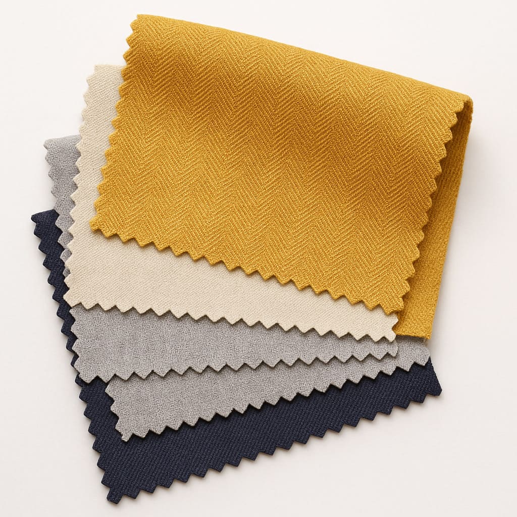 Собираем перечень материалов: ткани для одежды, бельевые, подкладочные, мебельные, портьерные, технические, трикотаж, нетканые полотна. Фиксируем артикулы, плотность, состав волокон, назначение.